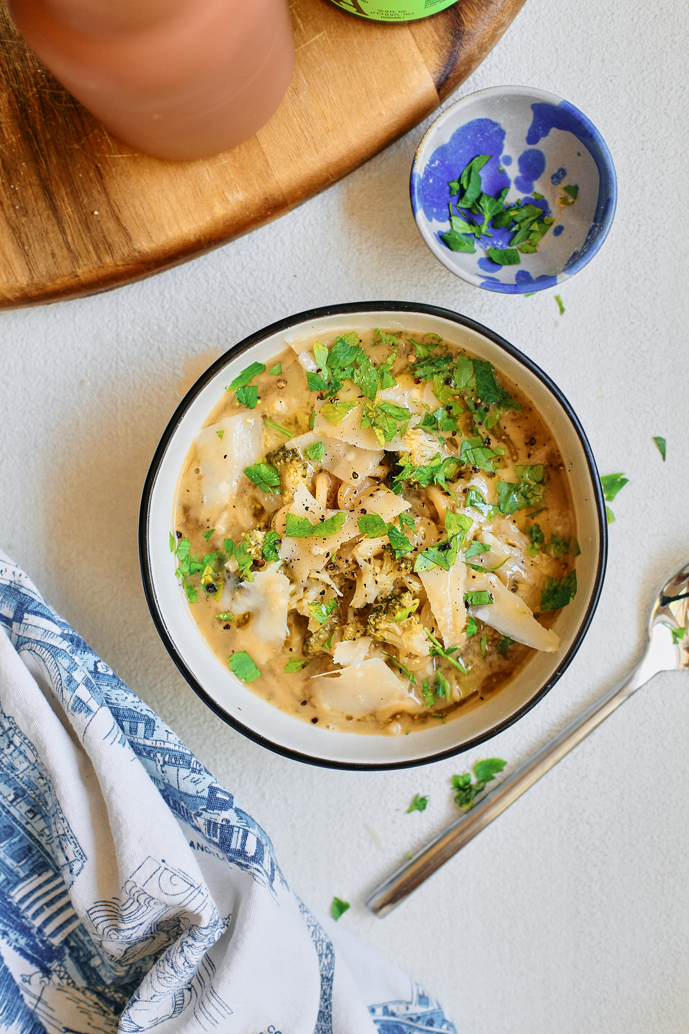A luxurious creamy tomato base with perfect clouds of tortellini, tender pieces of chicken and vibrant kale. All you need is some shaved parmesan on top and you have yourself a bowl of pure comfort food. My most viral soup to date!