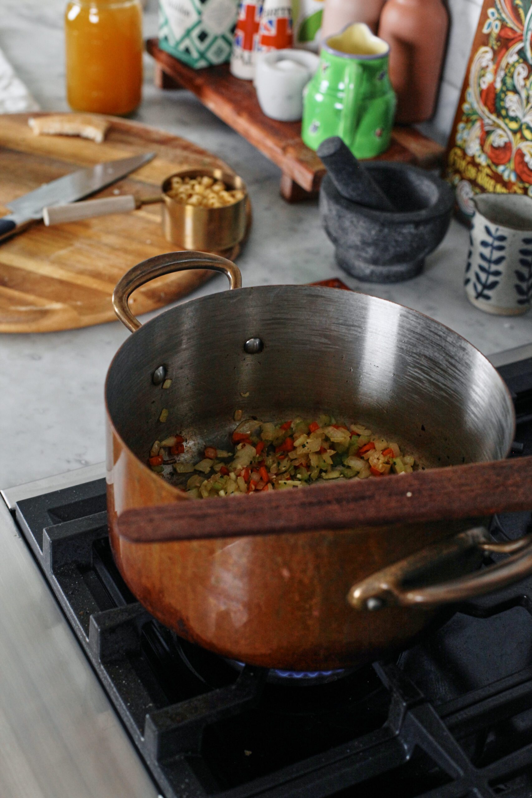 If you’re making this specifically to freeze, I recommend stopping before the pasta goes in. Let the soup base cool, freeze it in portions (for up to 3 months), then reheat and loosen with a little extra liquid if needed, and cook the pasta fresh right in the soup.